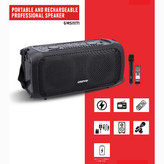 + موارد بیشتراسپیکر قابل حمل و شارژی Geepas GMS11171 با میکروفون عملکردی باورنکردنی را با صدای فراگیر با کیفیت بالا و باتری بادوام برای لذت بردن بیشتر و بهتر از صدای صوتی ارائه می دهد. این یک بلندگو ضروری است و واقعاً مظهر سبک و کلاس در چنین اندازه جمع و جور است. با این حال این اسپیکر با توان بالایی که دارد به راحتی جواب گویی مهمانی های شما خواهد بود همچنین این محصول دارای یک عدد میکروفون برای شادی بخشی هرچه بیشتر به شما و دوستانتان هست و یک بند رودوشی هم برا آن طراحی شده که به خود اسپیکر متصل میشود و برای حمل راحت تر آن استفاده خواهد شد. در مورد صدای فوق االعاده این محصول باید گفت واقعا فراگیر است . همچنین شما میتواند با استفاده از دکمه های بالای اسپیکر صدای بیس ، تریبل و گین آن را تنظیم کنید. رقص نور اسپیکر یک اکوالایزر واقعی میباشد که با صدای دستگاه شروع به کار میکند و رنگ های بسیار جذابی را برای شما به نمایش میگذارد.