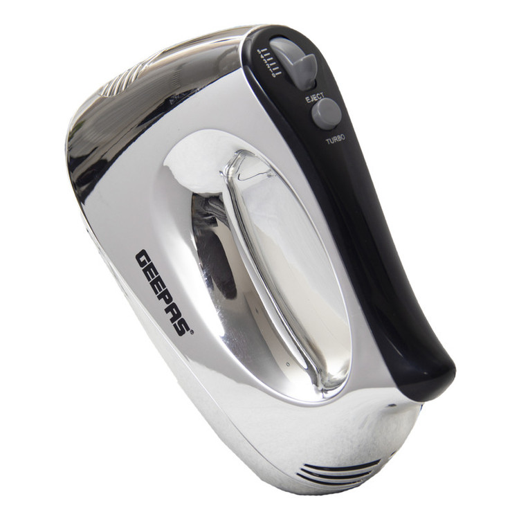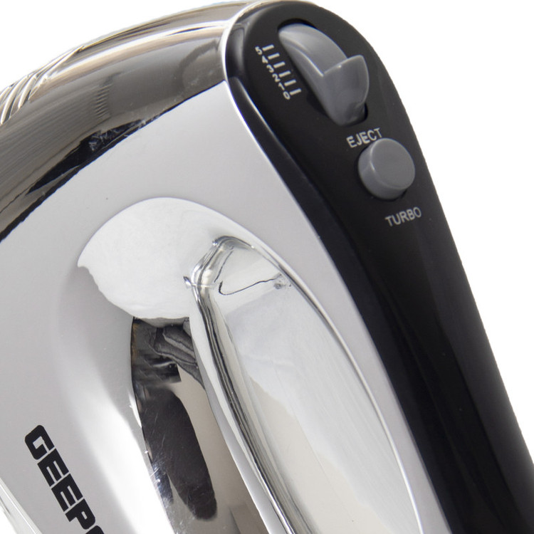 برروی همزن دستی جی پاس مدل GHM6127 یک کلید تربو و پنچ سرعت متفاوت از کمترین سرعت تا بالاترین نصب شده است. حال میتوان با در نظر گرفتن نوع مواد غذایی سرعت دلخواه خود را تنظیم نمود. این محصول دارای دو جفت تیغه از جنس فلز است که هرکدام برای یک نوع مواد غذایی طراحی شده است. این دو مدل تیغه یکی برای همزدن خمیر و دیگری برای همزدن مایعات از جمله مایع کیک، انوع سس، حجم دادن به تخم مرغ، خامه و…. مورد نیاز است. برای بیرون آوردن تیغه های میله ای از دستگاه کافیست دکمه ی اجکت روی دستگاه را فشار داده و آن را از وسیله جدا نمود.