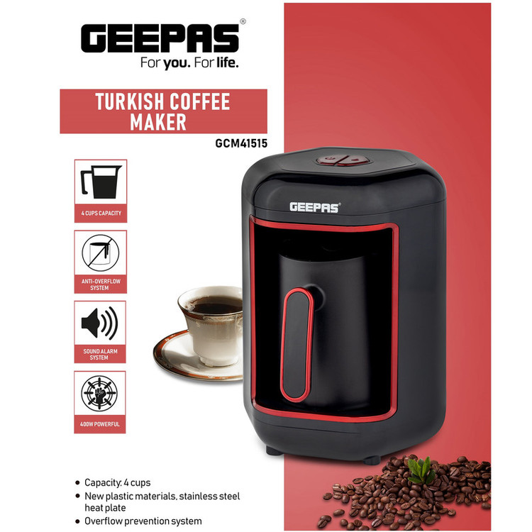 ظرفیت 4 کاپ قهوه ترک جنس بدنه:پلاستیک چنس پارچ: استیل ضد زنگ مجهز به سیستم جلوگیری از سر ریز سیستم اعلان صوتی مجهز به سیستم خاموش شدن اتوماتیک