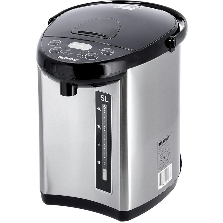 ظرفیت 5 لیتر پوسته بیرونی ضد زنگ قابلمه داخلی فولاد ضد زنگ AC 220-240 V 50-60 هرتز 750-892 W محافظ جوش خشک: خاموش شدن خودکار پس از جوشیدن بدون آب، ایمنی بالا تصفیه خودکار کلر و قفل توزیع ایمنی دکمه روشن/خاموش جداگانه