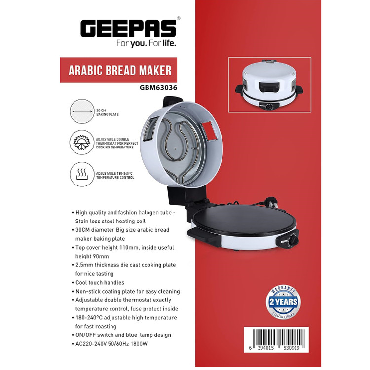 - بشقاب پخت نچسب – بشقاب پخت نان پز با استفاده از بهترین و یکدست ترین مواد نچسب ساخته شده است که اجازه می دهد نان بدون شکستن در یک تکه بماند و از چسبیدن آن به بشقاب جلوگیری می کند. نشانگر نئون - زمان بندی در ساخت نان پز مهم ترین جنبه است و جی پاس هنگام تولید این نان پز درجه یک و زیبا در طراحی آن را در نظر داشته است. این نشانگر به کاربر کمک می کند تا در تمام نقاط پخت را بررسی کند. رنگ قرمز گرمایش را نشان می دهد در حالی که سفید با خوشحالی نشان می دهد که دمای دستگاه آماده پخت است. دارای فضای ذخیره سازی سیم برق و طراحی فشرده برای صرفه جویی در فضا. چراغ آماده روشن/خاموش خودکار برای کنترل حرارت ترموستاتیک. فولاد ضد زنگ مستحکم – نان پز اتوماتیک Geepas با بدنه ای از جنس استنلس استیل با کیفیت بالا ساخته شده است که به حفظ عملکرد محصول و توانایی آن در پختن روتی و تورتیلا برای سالها کمک می کند. همچنین از آسیب یا فرسایش خارجی وگیری می کند. تمیز کردن آسان و ذخیره سازی راحت - این نان پز فقط باید با یک پارچه کمی مرطوب تمیز شود، به هیچ چیز دیگری نیاز ندارد، و تنظیم و استفاده از آن آسان است.