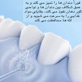 دارای 3 حالت ضعیف- قوی و پالس- برای روشن شدن کلید پاور را فشار دهید و برای تغییر حالت چند ثانیه نگه دارید- کلید پاور لمسی نمیباشد- دارای نازل ارتودنسی- نازل چرخشی 360 درجه- دارای مخزن آب 220 میلی لیتری-