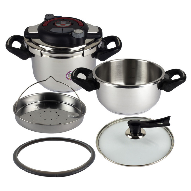 شامل دو قابلمه یکی 6 و دیگری 4 لیتری که درب کلیپسی و درب شیشه ای روی هر دو قابلمه قابل سوار شدن می باشد.