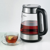 این کتری برقی مدرن با بدنه شیشه ای ، پایه چرخشی 360 درجه و با روکش فلزی، مناسب برای یک خانواده پرجمعیت است. ظرفیت آن تا 7/1 لیتر است. قدرت این مدل 2200 وات است که آب را بسیار سریعتر می جوشاند. همچنین می توانید مقدار کمتری آب را بجوشانید - حتی تا 100 میلی لیتر. و به لطف صفحه تولید گرمای مارپیچ آن ، میزان رسوب آهک آب کمتر شده و به راحتی قابل تمیز کردن است .در ضمن اگر فراموش کردید دستگاه خود را خاموش کنید نگران نباشید این دستگاه دارای یک سوئیچ خودکار داخلی است.