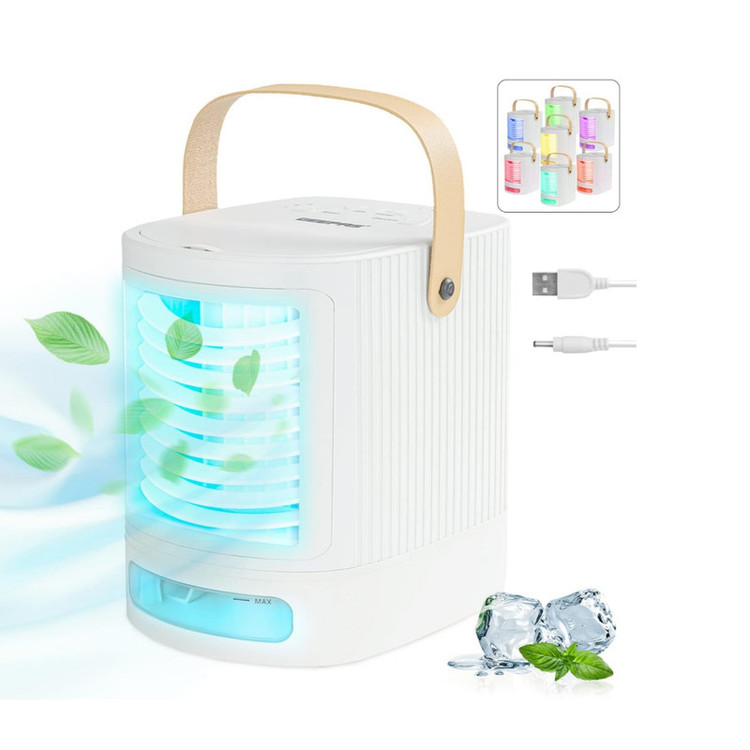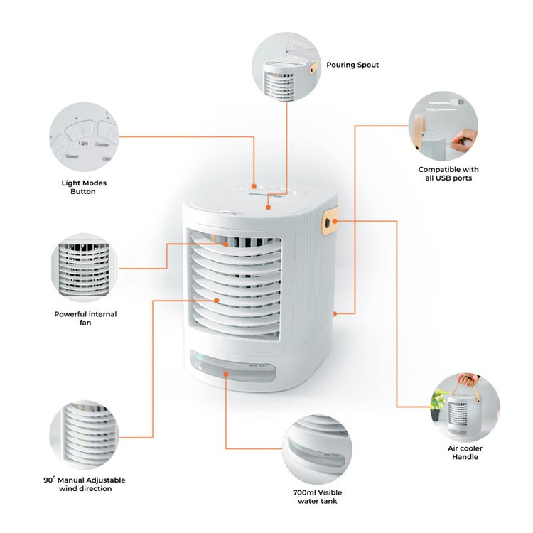 مینی کولر گازی قابل حمل جیپاس ترکیبی از فن خنک کننده هوا، رطوبت ساز، فن یکپارچه و چراغ شب LED است. می توانید آب تمیز را برای عملکرد مرطوب کننده اضافه کنید، یا روغن رایحه درمانی را برای عملکرد آروماتراپی اضافه کنید، همچنین می توانید از آن به عنوان فن میز در مواقعی که آب ندارید استفاده کنید. طراحی قدرتمند 4 در 1 آن را برای محل کار، خواب، آرایش، اتاق خواب، اداره، خانه مناسب می کند. مخزن آب شفاف 700 میلی لیتری با ظرفیت بزرگتر می تواند آب بیشتری را برای افزایش فاصله بین پر کردن آب ذخیره کند. نکته: افزودن مقداری مخلوط آب یخ به مخزن آب بالایی می تواند بهترین خنک کنندگی را داشته باشد. این کولر هوای تبخیری شخصی با داشتن دسته حمل مناسب برای مسافرت و حمل و نقل آسان از یک اتاق به اتاق دیگر عالی است. این کولر با توجه به ابعاد جمع و جور خود بیشتر برای سرمایش شخصی مناسب است. تغذیه با USB و منبع تغذیه 5 ولتی است، مناسب برای میز، میز کنار تخت، میز ناهار خوری، ادارات، خوابگاه و غیره.فن خنک کننده دارای چراغ LED 7 رنگ است. شما می توانید رنگ مورد علاقه خود را برای بهبود خواب انتخاب کنید و از آن به عنوان نورپردازی در شب استفاده کنید. برای احساس باد خنک کافیست آب یا آب یخ را داخل مخزن آب فن کولر هوا بریزید و آن را با USB به منبع تغذیه وصل کنید سپس دکمه روشن و خاموش را فشار دهید. سبک وزن و صرفه جویی در فضا: با توجه به پایه و بدنه فشرده، تهویه مطبوع قابل حمل به گونه ای طراحی شده است که نیازی به فکر کردن در مورد فضا نیست. این می تواند در هر قسمت باریک اتاق یا میز شما قرار بگیرد. این یک کولر هوای پرتابل است که فقط یک نفر می تواند از آن استفاده کند و نمی تواند کل اتاق را خنک کند! 3 فن و 3 سرعت خنک کننده: با 3 تنظیم سرعت فن و 3 تنظیم سرعت خنک کننده می توانید انتخاب کنید که به بهترین وجه برای راحتی شخصی شما مناسب است. تنظیم جریان هوا بسیار ساده و آسان است! می توانید کولر شخصی را از کم به باد زیاد تنظیم کنید. هر کدام را که با روحیه شما سازگار است را انتخاب کنید.